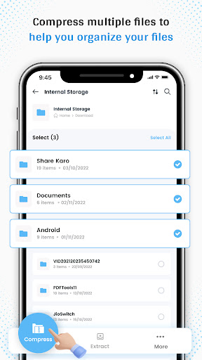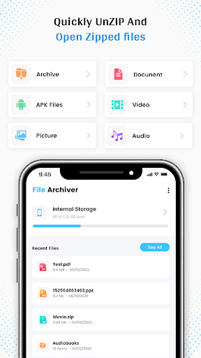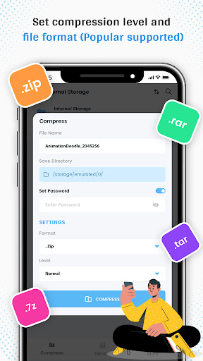 Apri Extractor Files Zip, RAR e Unzip in file di decomposizione o apri file zip per decomprimere il file.Estratto e amp;I file di decomposizione tramite questa app devi solo toccare il file compresso di qualsiasi formato e amp;Seleziona l'opzione per aprire ed estrarre il file.
