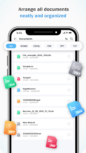 - Apri e visualizza i tipi di documenti: DOC, Excel, Ppt, PDF, TXT, RTF, Pages, JPG, GIF, PNG