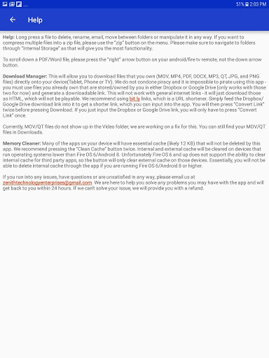 * Download Manager: This will allow you to download files that you own (MOV, MP4, PDF, DOCX, MP3, QT, JPG, and PNG files) directly onto your device. We do not condone piracy and it is impossible to pirate using this app - you must use files you already own that are stored/owned by you in either Dropbox or Google Drive (only works with those two for now) and generate a downloadable link. This will not work with general internet links - it will just download those as HTML, which will not be playable/useful for you. We recommend using bit.ly links, which is a URL shortener. Simply feed the Dropbox/Google Drive download link into it to get a shorter link, which you can input into the app. You will then press "Convert Link” twice before pressing Download. If you just input the Dropbox or Google Drive link, you will only have to press "Convert Link" once.