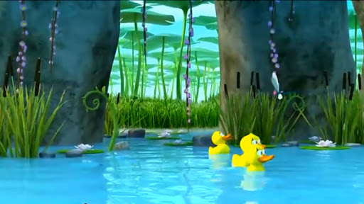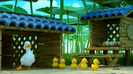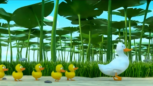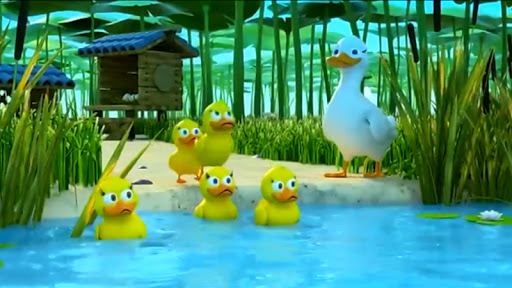 Cinque Little Duck è andato a nuotare un giorno in una collina e lontano davanti Mamma Duck disse