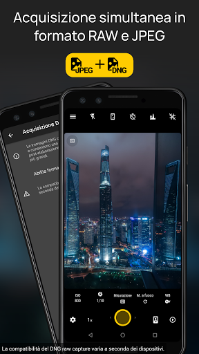 ● Modalità di bracketing automatico dell'esposizione: fino a 7 foto con spaziatura di esposizione personalizzata. Ora supporta la cattura istantanea anche con JPEG DNG su migliaia di dispositivi.