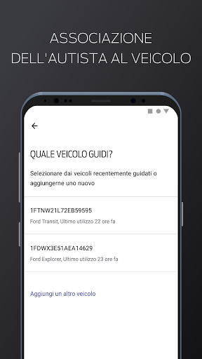 • Associazione di autista e veicolo Selezionare e condividere i dettagli del veicolo guidato con il tuo responsabile