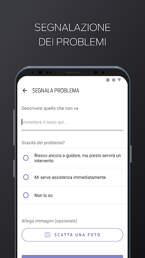 • Segnalazione dei problemi. Segnalare in modo facile e veloce i problemi del veicolo all'azienda, sia durante il controllo quotidiano sia in qualunque momento della giornata.