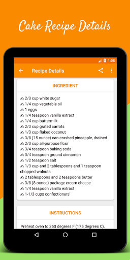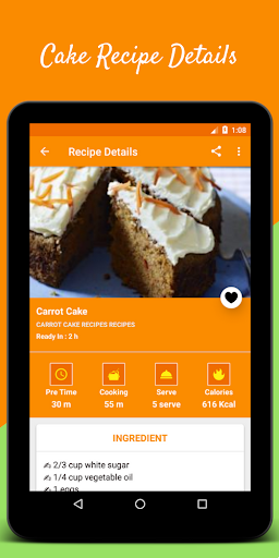 Some people want eggless cake recipe for their daily dessert, for them this app is ideal. Lot's of eggless cake recipe you can get through this app. This Carrot Cake Recipe app is on of the best offline cake recipe app for everyone. You can use each healthy cake recipes from this app in offline.