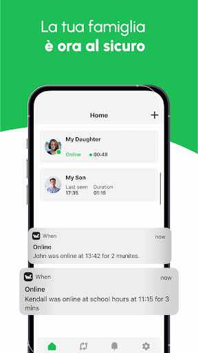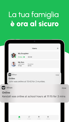 - Ricevi notifiche istantanee quando la tua famiglia è online