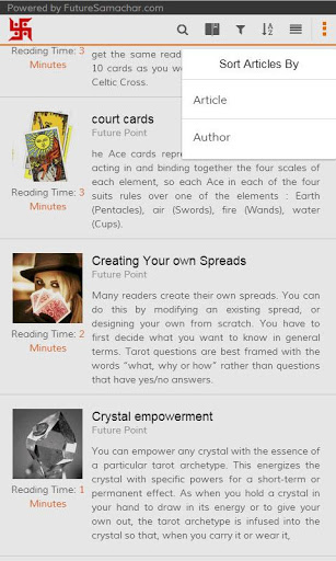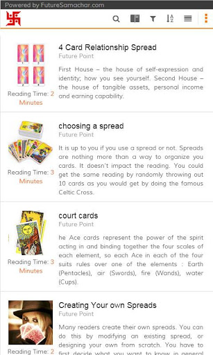 Tarot app articles describe the method of Tarot consultations which offer guidance, clarity, and the opportunity to use the symbolic language of Tarot to go deeper to find wisdom and insight. Tarot can answer questions for all types of issues, such as relationship compatibility, spiritual growth, career choices, life choices, family, school and education, where to live, health, and other topics.