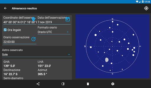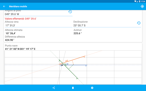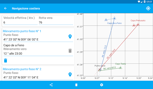 - Rilevamenti bussola, memorizza i vari rilevamenti per confrontarli con la tabella ufficiale.