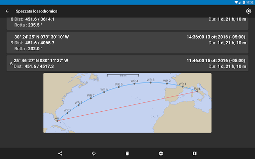 Nelle funzionalità relative alle rotte è presente una mappa, la mappa non è un carta nautica e non è utilizzabile come un carta di navigazione, ma come semplice mezzo per mostrare la rotta.