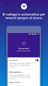 La VPN Keepsafe per Android ti mette automaticamente al sicuro non appena ti colleghi a un hotspot Wi-Fi non ancora impostato come rete fidata. Non dovrai mai ricordarti di usare la VPN o di controllare la banda utilizzata.