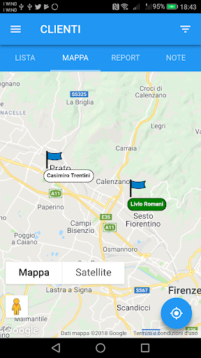 Puoi vedere tutti i tuoi clienti in lista o sulla mappa e avere a colpo d'occhio lo stato della situazione: i clienti verdi non sono urgenti, i clienti gialli sono in scadenza, i clienti rossi sono scaduti. I clienti blu non hanno assegnata una scadenza.