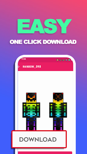 Rainbow Skinpack per Minecraft PE è molto facile da usare.Basta fare clic sul pulsante per iniziare a giocare con la tua pelle preferita o scaricandola per prima.Facile da usare Basta fare clic sul pulsante "Scarica"