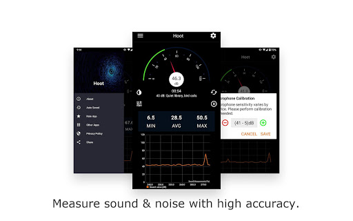 Hoot is a highly accurate Sound Meter. A Sound Meter, also commonly known as Noise Meter, Decibel Meter or Sound Pressure Level (SPL) Meter, lets you measure the level of sound or noise in your environment. It is a perfect tool to detect and quantify noise pollution.