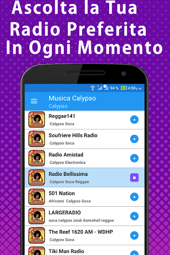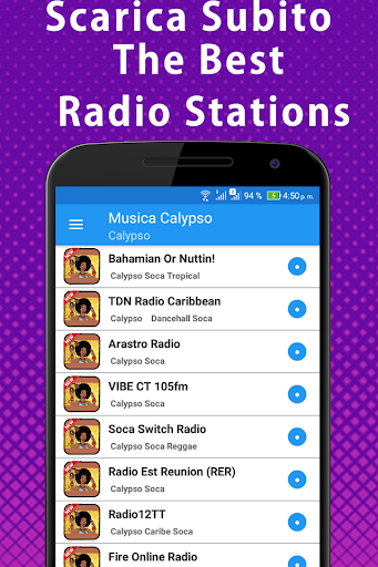 In questa applicazione troverai le migliori stazioni radio con la nuova programmazione gratuita di musica calypso come: Radio Calypso FM, FM JAMAICA RADIO, DeLaNuca FM-2, The Black and White Radio Show, The Black and White Radio Show, Rhythm City FM , PONDENDS, eNFX Radio Trinidad - Radio Beyond Good, Soca Addicts Radio, Soca Radio Switch, Fire Online Radio, Reggae King Radio, POWER SLAM RADIO, Soca Jamz HD Online, LARGERADIO.COM per telefoni cellulari, Carib101Radio, RADIO.IPIP.CZ : 96MIXX.COM, NRG ONLINE RADIO, LARGERADIO.COM per telefoni cellulari (128 Kbps, DHype Station, MyChutneySoca.com, Flavor HD Radio, Soufriere Hills Radio, VIBE CT 105fm, Radio Amistad, Caribriddims Radio.