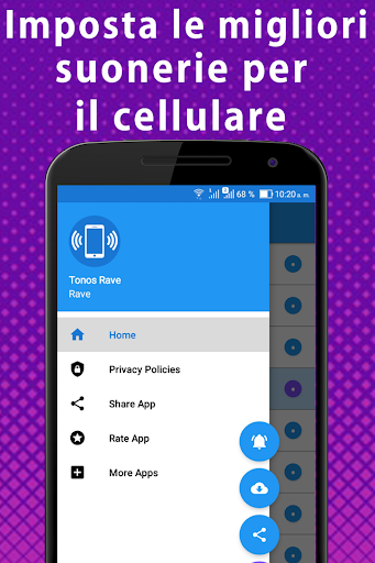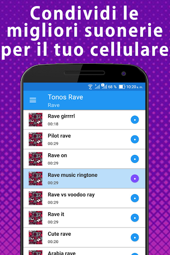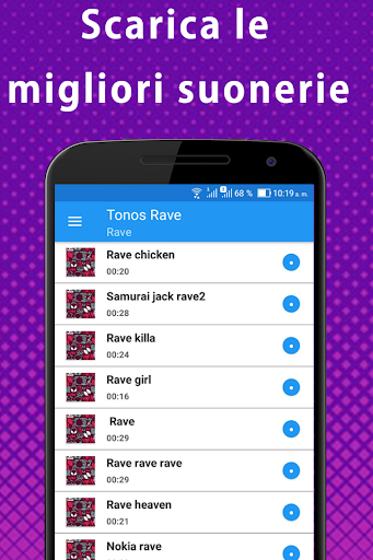 In questa applicazione è possibile sintonizzare le migliori suonerie rave 2018/2019 gratuitamente come: rave arabia, rave nokia, rave pilot, rave and roll, rave chiken, rave girl, rave heaven, rave is king, rave rave killa, rave music suoneria, rave noise, rave on, rave rave, rave trance ring, rave vs voodoo ray, rave x, rave thundergrou, rock n rave 1st, samurai jack rave2, soddisfazione, salva il rave.