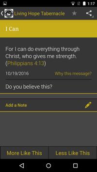 Living Hope Tabernacle CotN app is designed to help you connect with Christ and Bible scripture. You will also be able to receive information regarding church events. Be sure to take the short, personal assessment in order to receive personalized content on your schedule.
