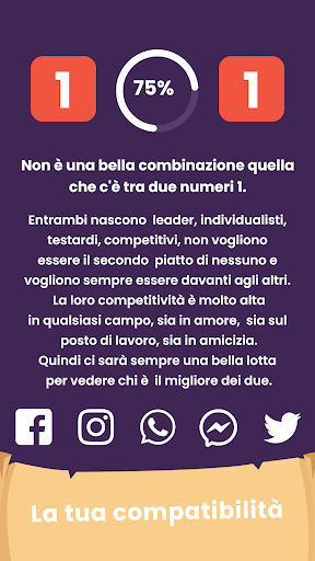 Condividi le previsioni e le informazioni numerologiche con tutti! Puoi farlo tramite l'app su Instagram, Twitter, Facebook o Whatsapp.