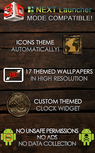 Avanti Tema 3D Launcher. Tema estremamente dettagliato e di alta qualità elegante e moderno a tema di launcher con grafica ad alta definizione Icone a tema automatico, 17 sfondi HD personalizzati e un widget orologio personalizzato, per fornire una grafica molto dettagliata e definita anche in dispositivi con le schermate di risoluzione più elevate. Tutto è tematico negli ultimi dettagli, utilizzando trame metalliche, effetti di illuminazione, riflessioni e gradienti per dare un grande aspetto di contrasto e qualità.