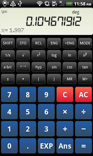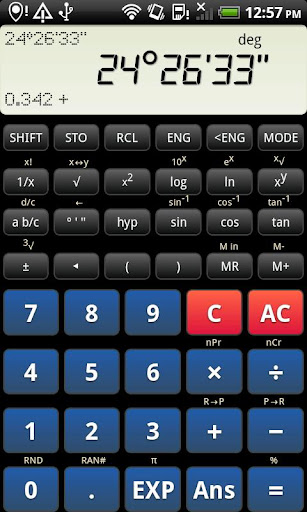 Droid Calc è dotato di decimale (12.3), sexagesimal (33 ° 20 '10 "), esponenziale (2.3E-22) eEsposizioni frazionari (2 3/4). Esegue funzioni aritmetiche, trigonometriche e logaritmiche. Conosce permutazioni, combinazioni, frazioni, calcolo percentuale e conversioni di coordinamento e conversioni di coordinamento. E hai 7 celle di memoria per memorizzare i risultati.