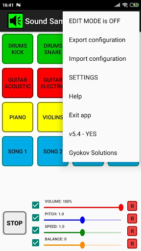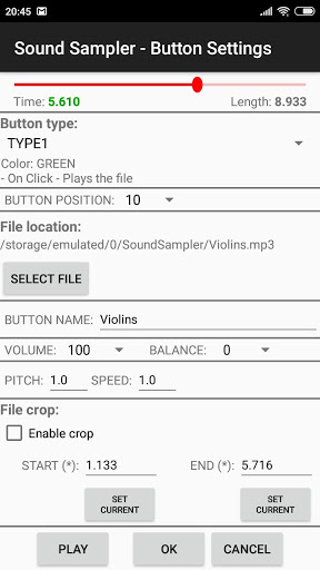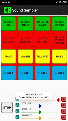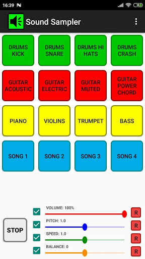 Sound Sampler è un'app della tavola armonica per riprodurre i suoni al clic del pulsante. I suoni sono personalizzabili e vengono selezionati dai file multimediali (audio o video) dalla memoria del dispositivo o online. Puoi creare la tua tavola armonica unica. Esistono diversi tipi di pulsanti per diverse opzioni di riproduzione e puoi controllare il volume, il bilanciamento, il tono e la velocità del suono. Sono disponibili anche il ritaglio dei file e la dissolvenza in entrata / uscita ed effetti come il ping pong.