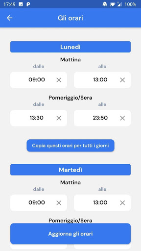 Aggiunta la possibilità di copiare gli orari del lunedì per tutti i giorni e il "menù digitale" accessibile nella schermata "il servizio" oppure durante la creazione del negozio. Sono stati corretti diversi bug