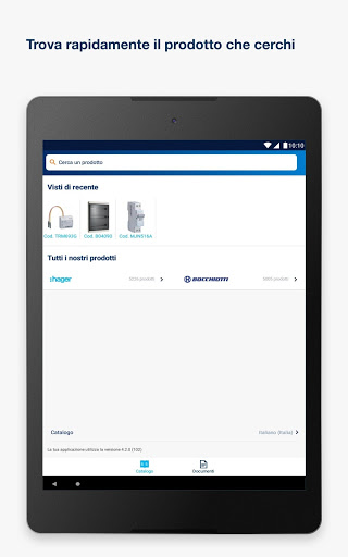 All'interno dell'applicazione Hager Bocchiotti Catalogo, è possibile trovare tutta l'offerta Hager Bocchiotti dedicata ai professionisti: catalogo prodotti, prezzi, documentazione tecnica, manuali utente, brochure commerciali, video...