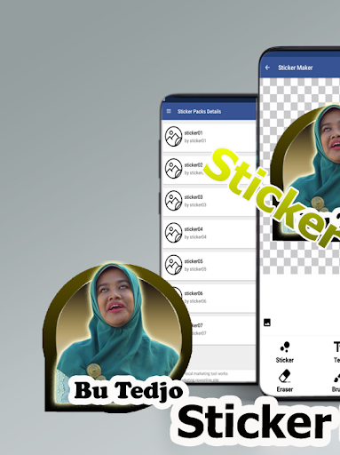 Bu Tejo Sticker Maker adalah applikasi pembuwat sticker sesuai keinginan dengan beragam aset yang sudah disediakan.