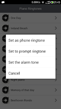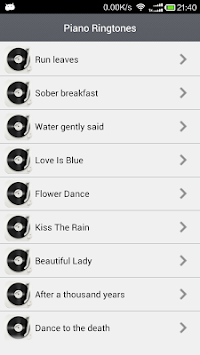 Are you frightened by the sudden ringing of the phone ringing , do you feel your ringtones aren not beautiful. if you look around for beautiful piano music.Do not hesitate,piano ringtones will be your good choice. Piano ringtones excerpt nice clip from classic music , the music is more suitable for your cell phone. You can simply press the song to listen, songs will be able to set up by a long press . Piano ringtones can be set as ringtones, notification and alarm tone. Piano ringtones make your phone alive. Come and have these free piano ringtones.