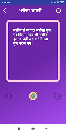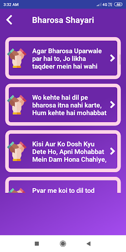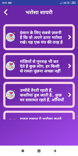 Una delle migliori app Shayari di tutti i tempi.Questa app contiene la più grande raccolta di Bharosa Shayari, Hindi Shayari e Bharosa Status.