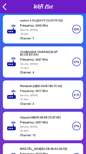 L'app aggiorna costantemente la potenza del segnale WiFi in modo da poter camminare per casa, lavoro o ovunque per trovare la migliore resistenza del segnale WiFi.Quindi puoi utilizzare l'app per monitorare la potenza del segnale WiFi.