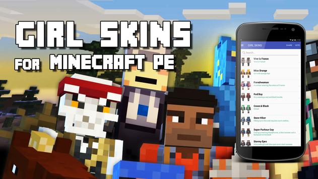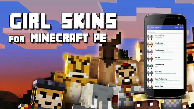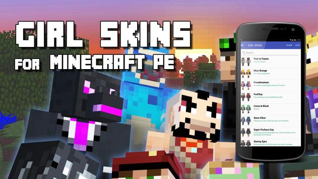 Girl Skins for Minecraft PE Free is the best Skin app for MCPE ! Have you ever wanted to stand out from the crowd on a multiplayer server with the best skin? Well now you can! Show off to all of your friends and let the admin's know whose the Minecraft Boss when you are wearing your newly added skin!
