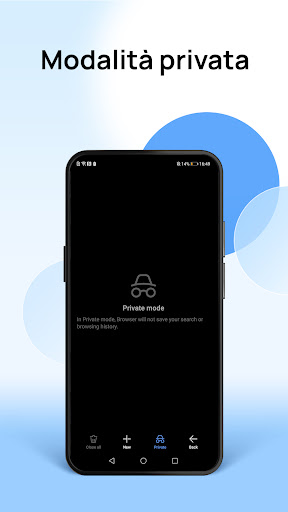 Modalità privata. Naviga in sicurezza! Naviga in Internet senza salvare la tua cronologia di ricerca. Tutti i dati di ricerca verranno eliminati al termine della sessione.