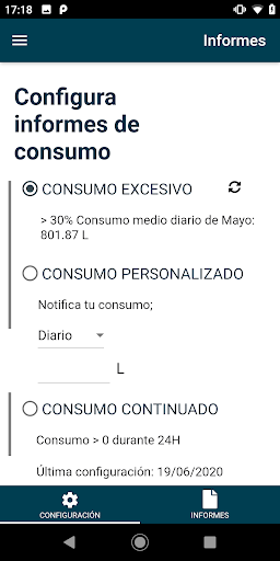 - Gestione degli eventi Per evitare un consumo eccessivo di acqua, con la misurazione Hydoconta puoi gestire i tuoi eventi di 3 diversi modi, confrontandoli con un periodo precedente, personalmente o continuo Allarmi di tempo dei consumatori.