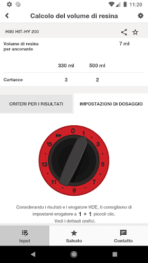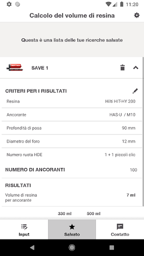 I calcolatori di volume Hilti consentono ai professionisti di stimare con la massima facilità la quantità richiesta di pacchi di alluminio di ancoraggi chimici. Ciò vi aiuterà ad avere sempre a portata di mano ciò che vi serve in cantiere! La personalizzazione dei risultati permette di adattare il calcolo alle condizioni di lavoro.