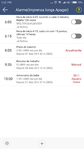 Una sveglia personalizzata supporta un rapporto mensile (come una configurazione salariale), un rapporto annuale (come set di anniversario)