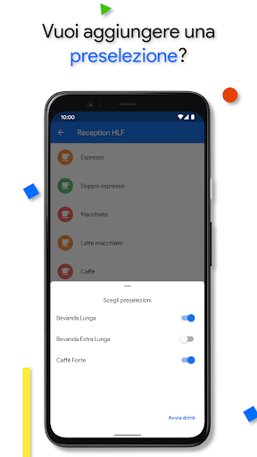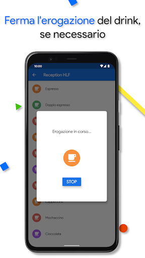 Questa applicazione consente di connettersi a qualsiasi macchina HLF e di erogare una bevanda senza toccare lo schermo della macchina.