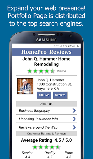 Home Pro Reviews is much more than handy smartphone App. Our premier members benefit from an innovative, search-optimized marketing platform that highlights your business- and your excellent reputation- around the Web.