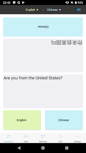 2, chat translation: two people separated by two places, each download app, each input their own native language, you can use the keyboard to enter text, you can also enter voice
