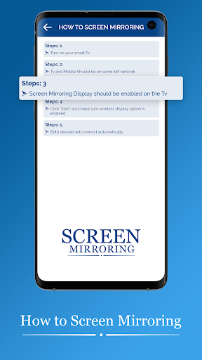 Screen Mirroring with TV App will assist you to scan and mirror your android phone or tab's screen on smart TV/Display (mira cast enabled) or Wireless dongles or adapters. Screen Mirroring Able to play videos, music, photos, etc in my Smartphone with any devices (smartphone, smartTV, laptop, tablet, etc) at anywhere. You can easily access all of your games, photos, videos and other application on a big screen using this Screen Stream Mirroring (Castto) App.