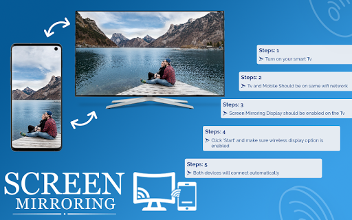 Screen mirroring work your TV should support Wireless Display and TV must be connected to wifi network same as your phone. use Screen Mirroring App to mirror your mobile screen to smart TV. Screen Mirroring is a technique, which allows you to mirror your smartphone on the TV screen. Screen Stream Mirroring is the most powerful app for mirroring and broadcasting your Android screen and audio in real time !