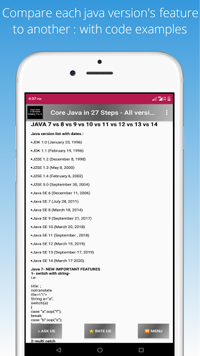 Elenco argomenti Java in 25 ore App fornisce: