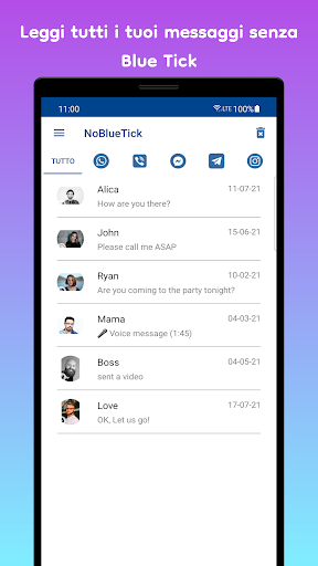 I messaggi sono crittografati sul dispositivo in modo che Nobluetick non possa accedervi direttamente.L'unica soluzione disponibile è leggerle dalle notifiche che si ricevono e creano un backup dei messaggi in base alla cronologia delle notifiche.