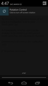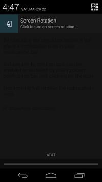 This is a convenience app with minimal permissions requirements. This simple app, with a simple checkbox, places or removes a notification button in the notification bar. Users can click on the button to either force a portrait mode orientation or to allow screen rotation.