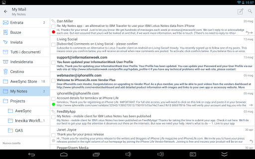 * SUPPORTO DI MOLTEPLICI APPLICAZIONI IBM NOTES - Posta, Contatti, Elenco indirizzi di Domino, Blocco note. Altre applicazioni quali discussioni/forum, librerie di documenti e sale riunioni saranno supportate prossimamente.