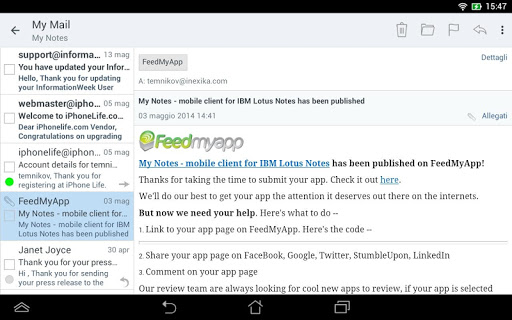 My Notes è progettato per funzionare con le applicazioni standard IBM Notes (in precedenza noto come Lotus Notes).