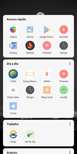 Infinity Launcher si impegna per facilità e organizzazione.Le applicazioni sono separate per categorie, che sono personalizzabili.Le applicazioni preferite possono essere aggiunte alla schermata principale del lanciatore per un accesso rapido.