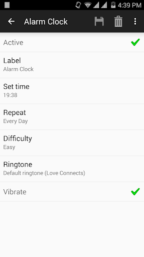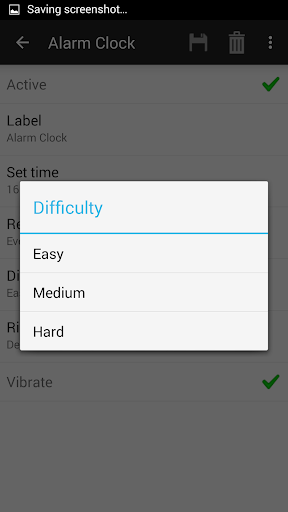Math – do some math equations.There are 3 type of equations like Easy, Medium, Hard to stop alarm.