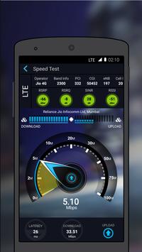 Displays the status and value of key coverage parameters based on currently connected Radio technology such as LTE/4G, 3G, Wi-Fi etc.