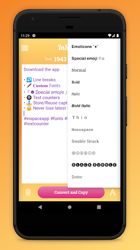 InSpace - puoi facilmente definire lo stile dei tuoi post, commenti o storie per Instagram