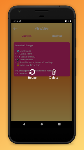 ✦ Memorizza il testo e gli hashtag che vuoi usare in futuro