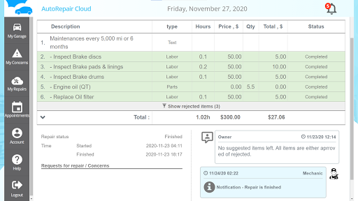 - it makes one workflow with repair shops: approve process, chat recording, image attachment